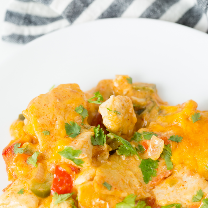 Busy Nights call for easy recipes like this Mexican Chicken Casserole! Loaded with Cheese, Chicken and all your favorite flavors. You can also skip the Tortillas for a low-carb option!