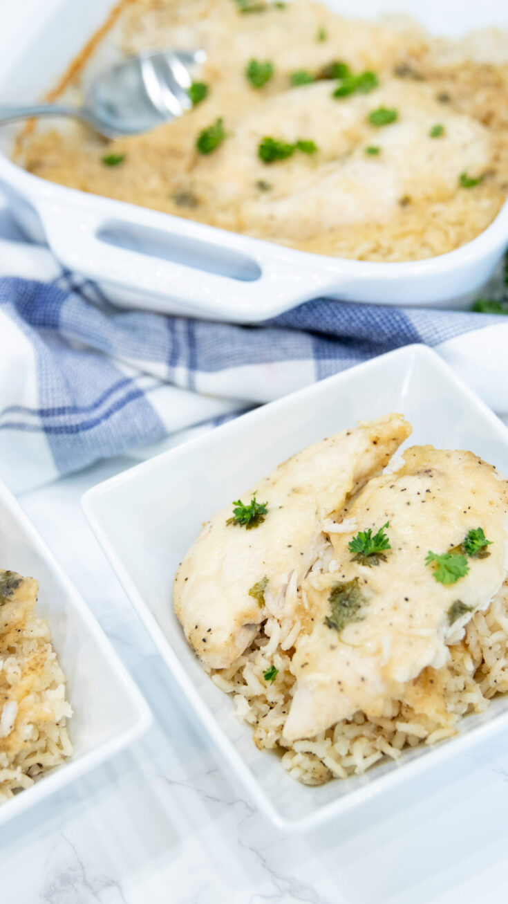 This Quick and Easy Parmesan Chicken & Rice Casserole is a one dish dinner that can be made ahead of time and baked when you get home on busy nights!